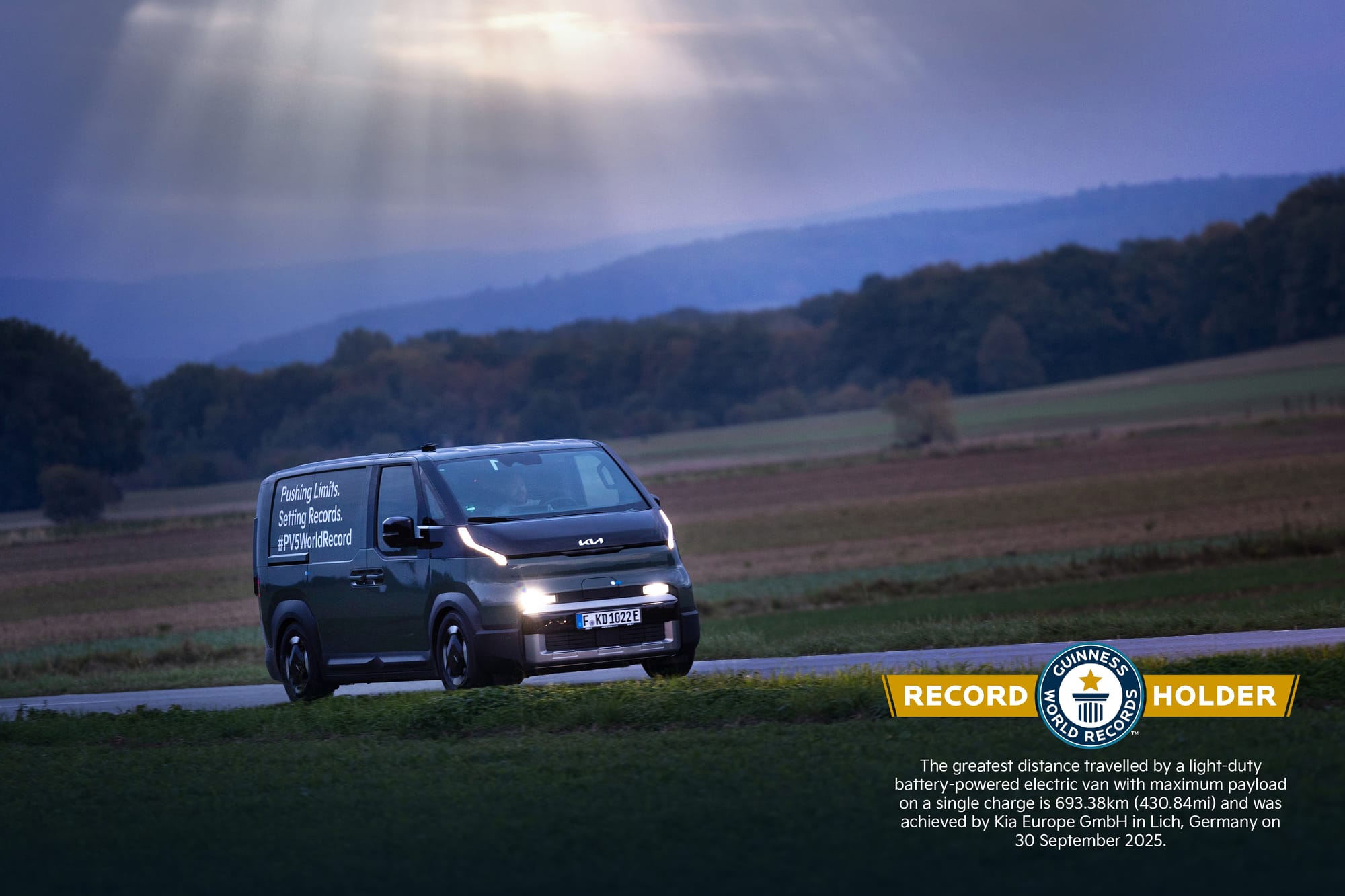 Kia PV5 rikkoi Guinnessin maailmanennätyksen – 693 kilometriä täydellä kuormalla ja yhdellä latauksella