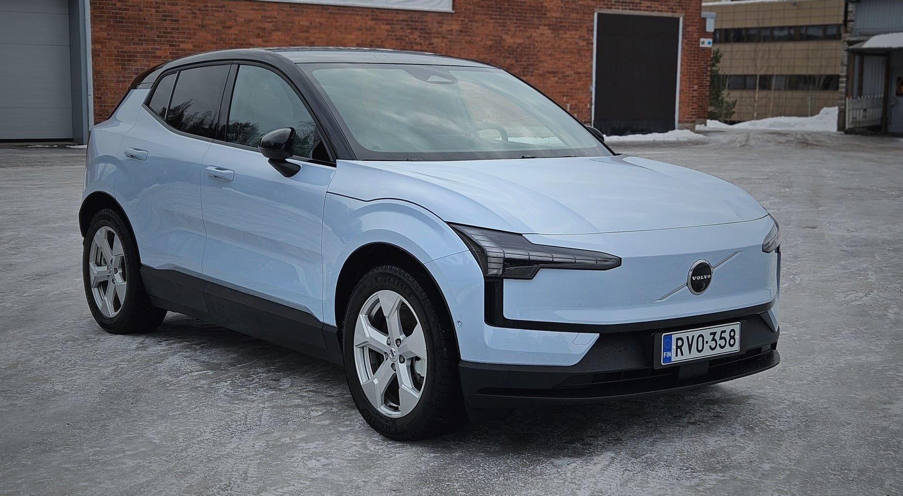 EX30 näyttää kuitenkin monen mielestä jopa sopusuhtaisemmalta ja onnistuneemmalta. Kaksivärinen korimaalaus ja esimerkiksi sinisen ”pakkaslumen sävy” tekevät autosta nuorekkaasti erottuvan.