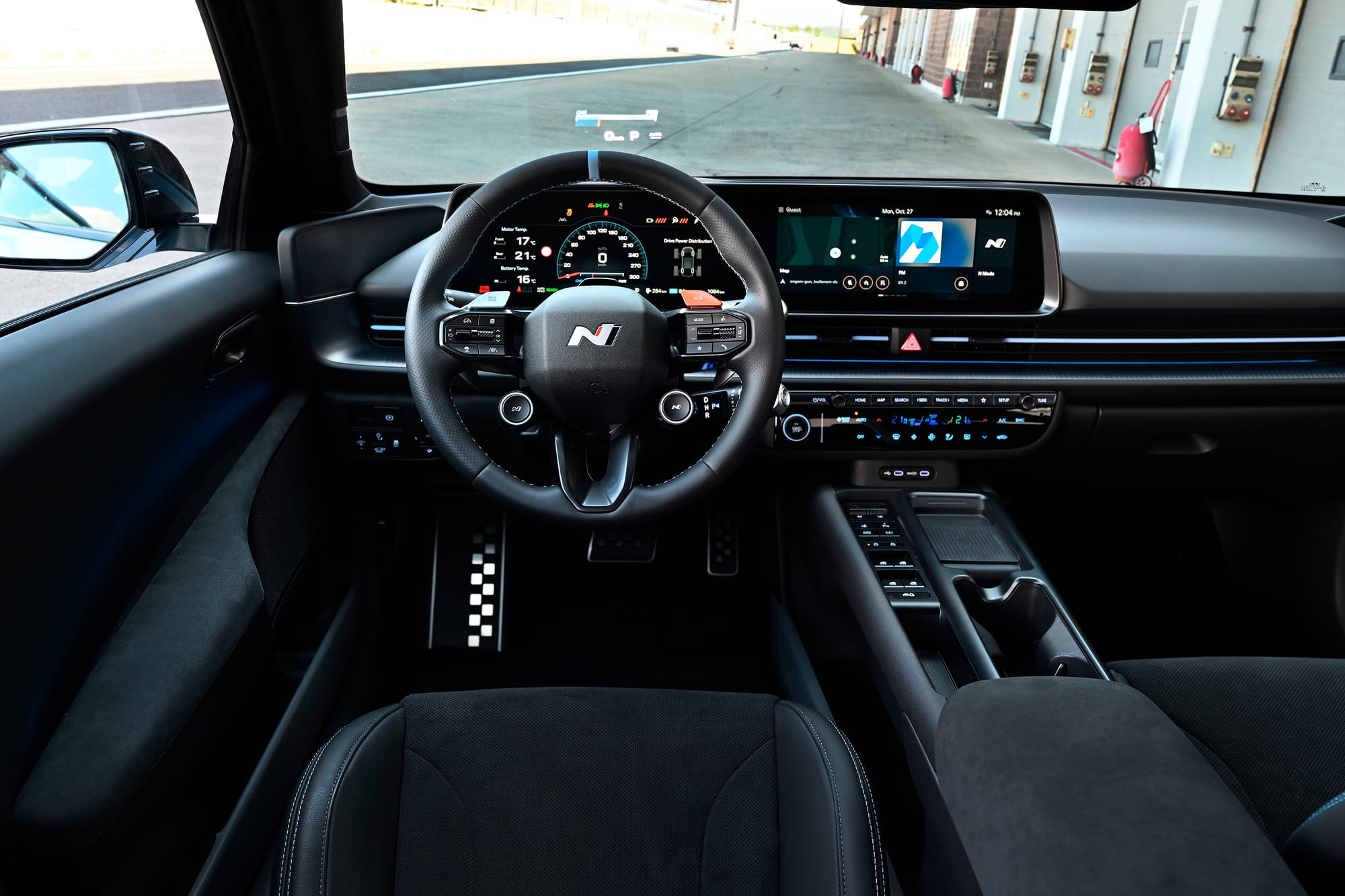 Ioniq 6 N ei kuitenkaan unohda arkiajajaa. Matkustamo on viimeistelty Alcantaralla ja nahalla, ja ergonomia on kunnossa pitkillekin ajoille. Fyysiset painikkeet ovat palanneet takaisin, mikä tekee auton ohjaamisesta suoraviivaista ja tarkkaa.