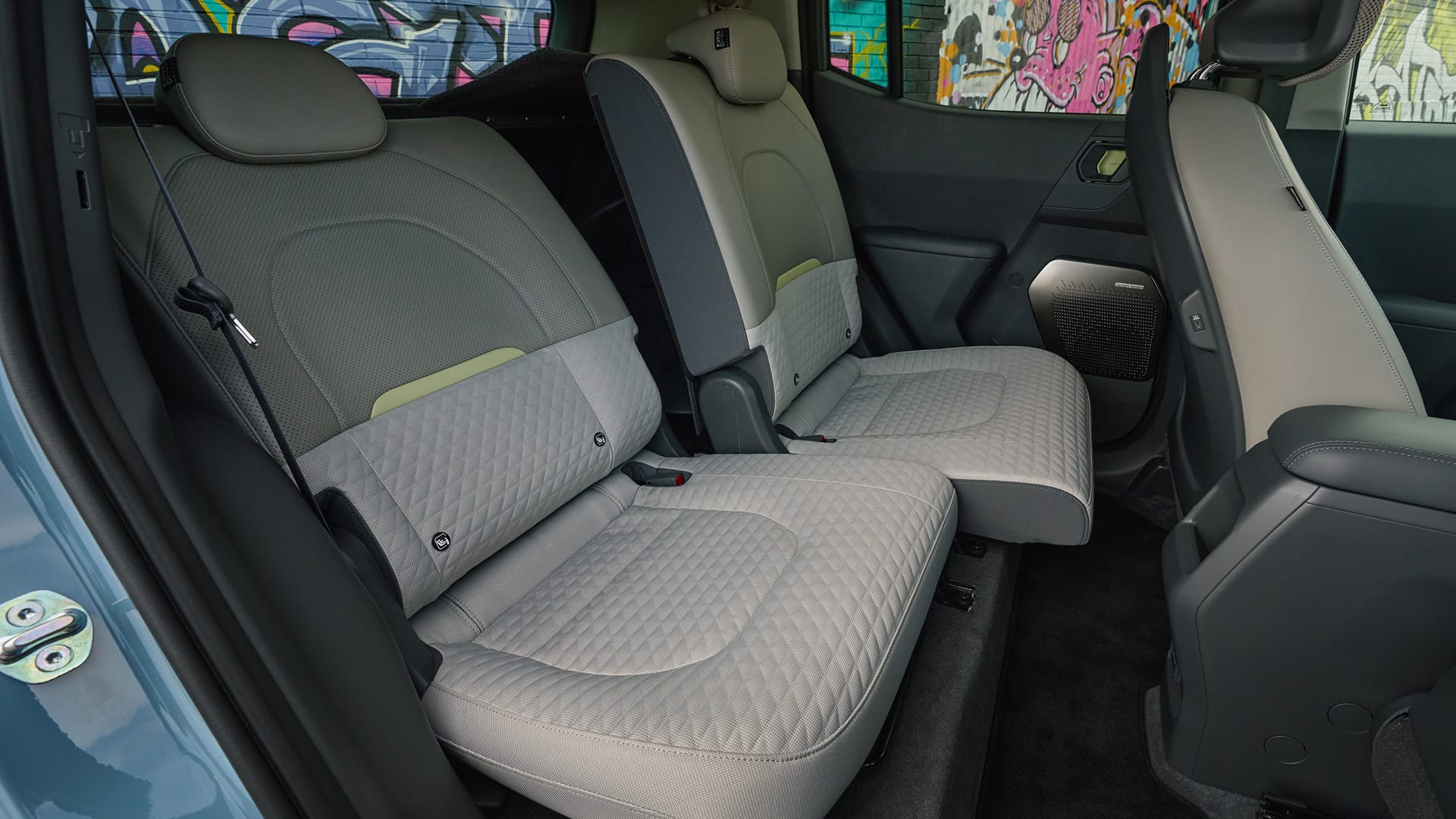 Vaikka auto on ulkomitoiltaan kompakti (pituus 4,06 metriä), sisällä on tehty tilankäytöllistä taikuutta. Kia lupaa, että EV2 voi toimia jopa perheen ykkösautona. Salaisuus piilee liukuvissa takaistuimissa: