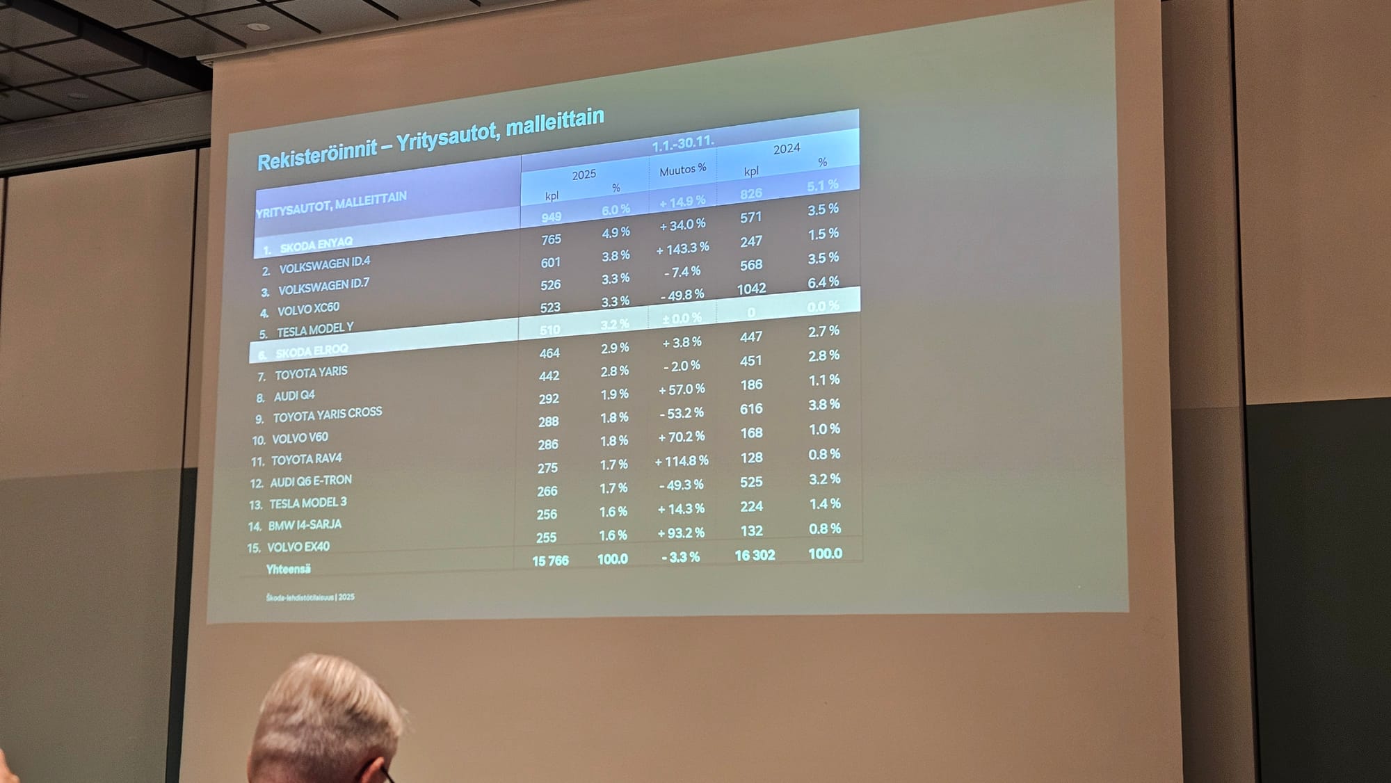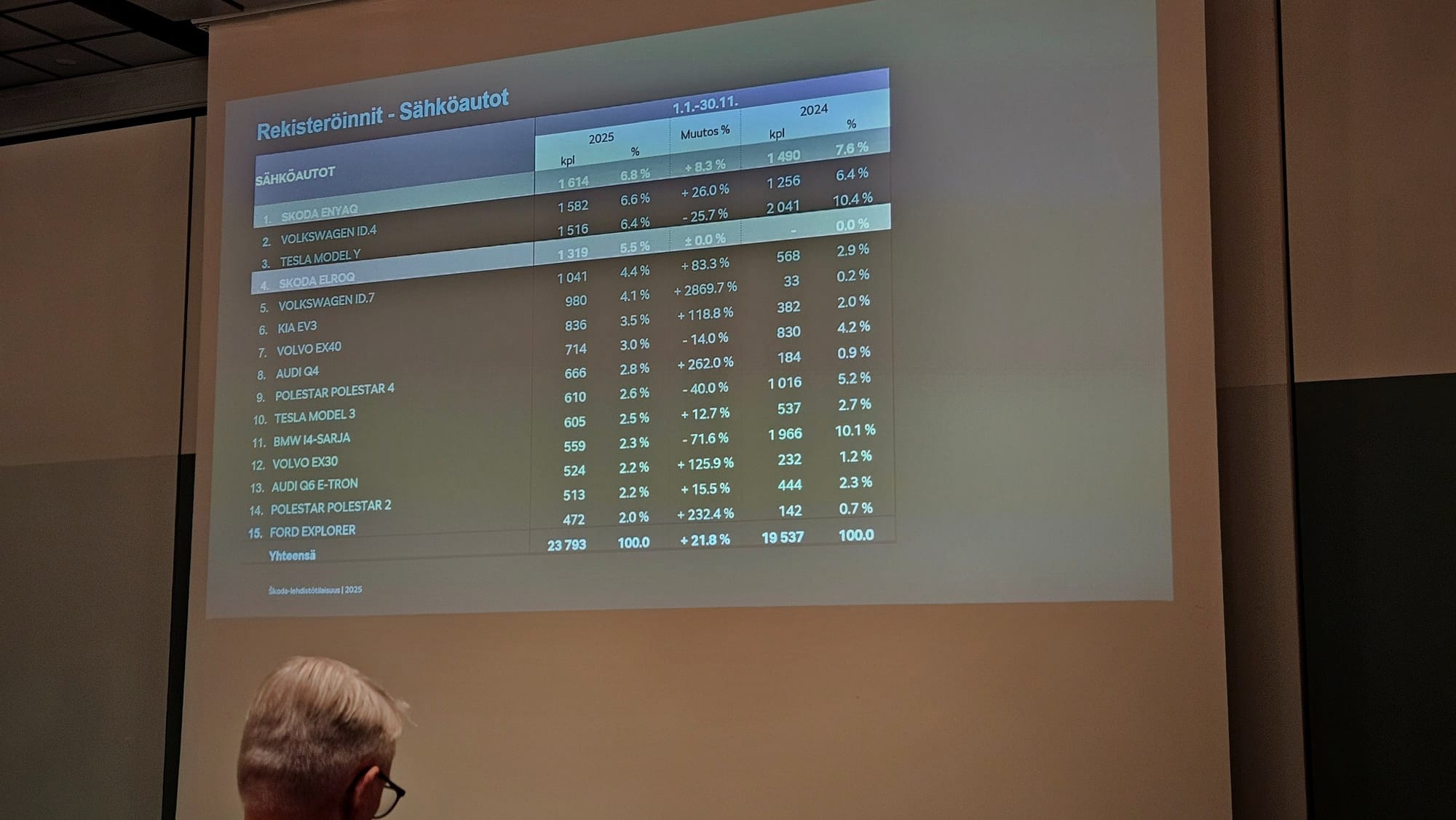 "Enyaq on ollut marraskuun loppuun mennessä Suomen myydyin sähköauto ja ykkönen myös yrityspuolella. Sitä on myyty Suomeen jo noin 10 000 kappaletta", Aalo kertoi.
